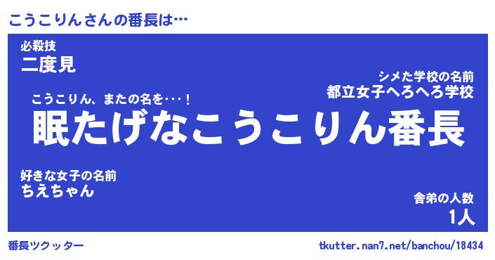 | ファンタジー風あだ名 | 『コウフェル』『エターナルコウコリンー』 |