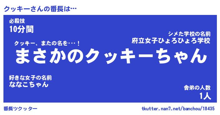 | ヒーロー風カッコイイあだ名 | 『スーパークッキー』『炎刃騎士クッ』 |