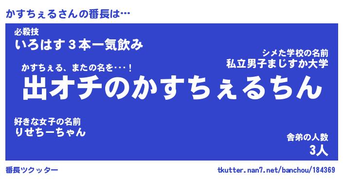 | ヘコむあだ名 | 『かすふぇ~』『なまこ酢』『かすお』 |