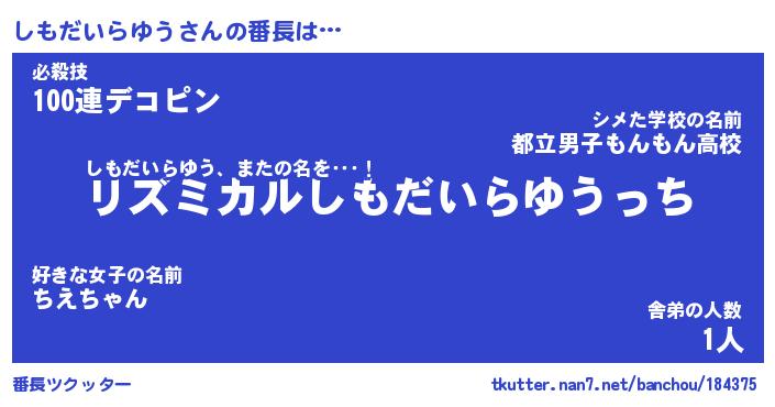 | ヒーロー風カッコイイあだ名 | 『スーパーシモダイラユウ』 |