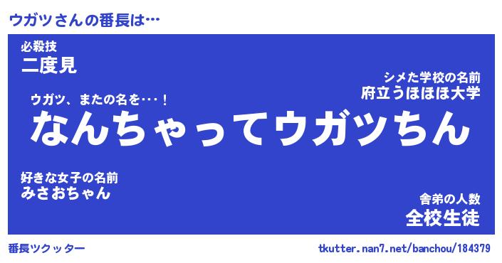 | ヒーロー風カッコイイあだ名 | 『スーパーウガツ』『ウルトラウガツマン』 |