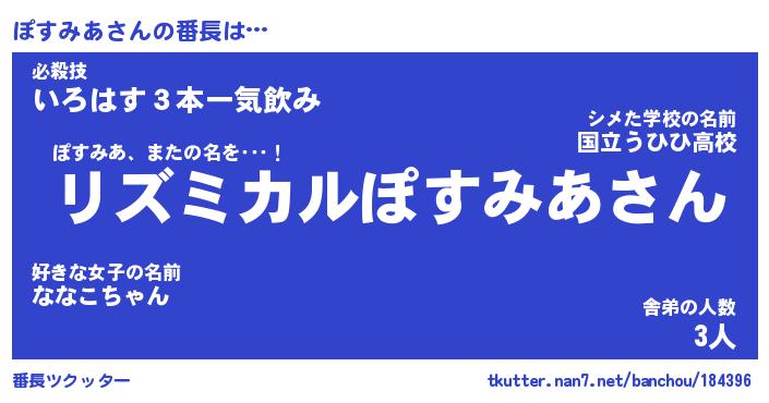 | 肩書あだ名 | 『ぽすみあ御曹司』『ぽすみあ国家主席』 |