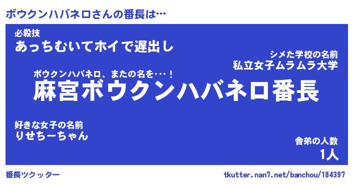| 肩書あだ名 | 『ボウクンハバネロ店長』 |