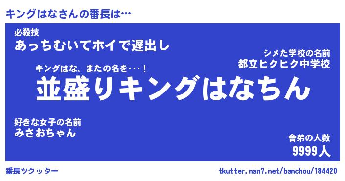 | 胡散臭い通販商品みたいなあだ名 | 『モテモテ間違いなし水晶球…その名も「キングはな」』 |