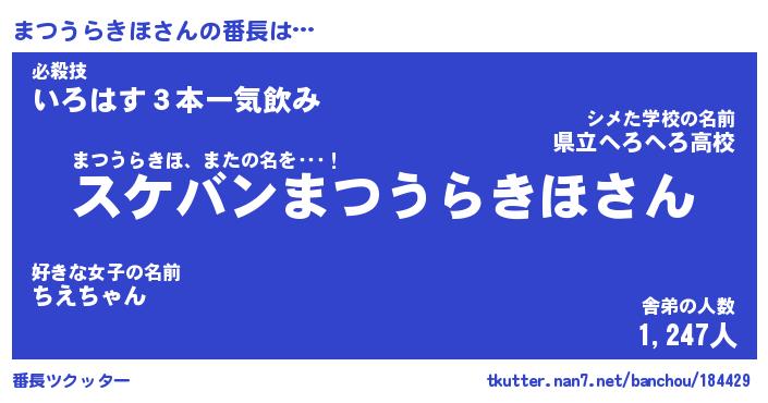 | ヘコむあだ名 | 『まつもー』『なまこ酢』『まつっ子』 |