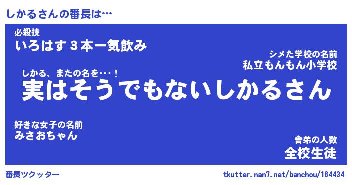 | ヒーロー風カッコイイあだ名 | 『スーパーシカル』『ウルトラしかるマン』 |