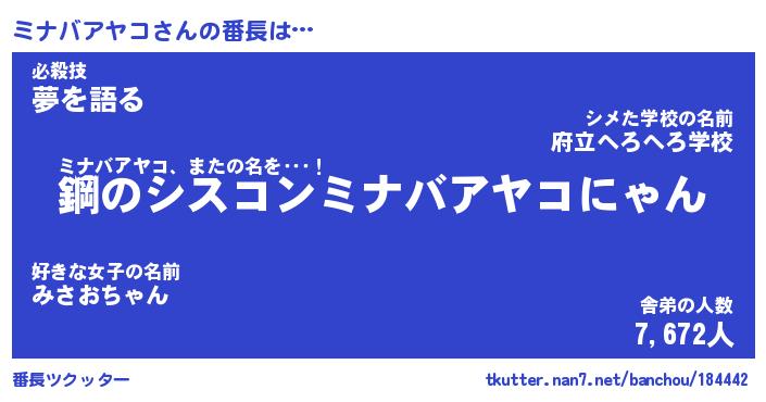 | 肩書あだ名 | 『ミナバアヤコ御曹司』 |