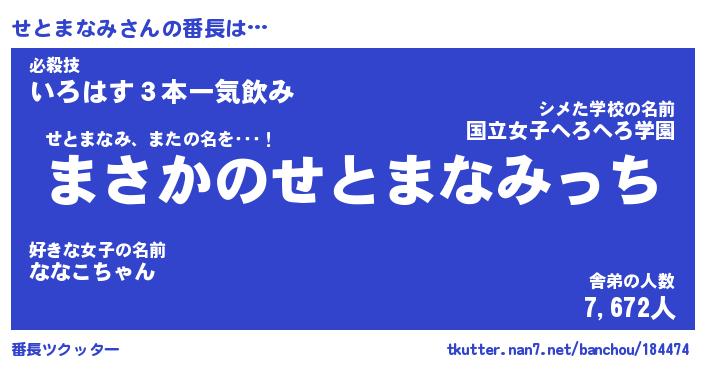 | ヒーロー風カッコイイあだ名 | 『スーパーセトマナミ』『炎刃騎士セト』 |