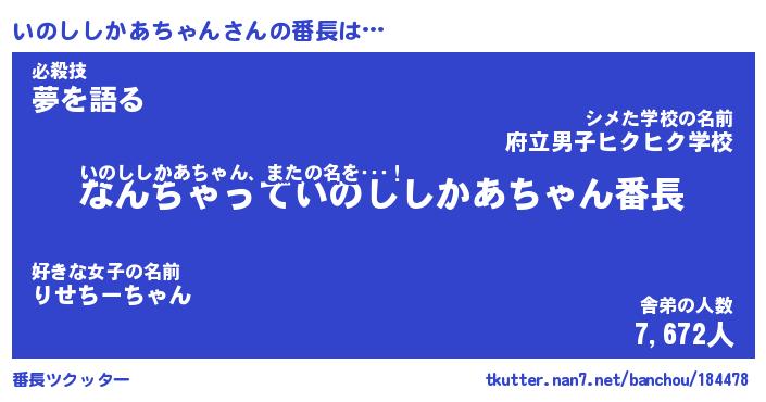 | ポケモン風あだ名 | 『イノチュウ』『イノシダネ』 |