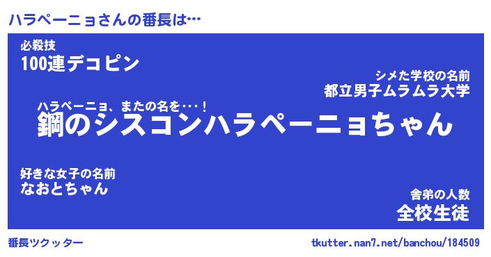 | ヒーロー風カッコイイあだ名 | 『スーパーハラペーニョ』『暗黒騎士ハラ』 |