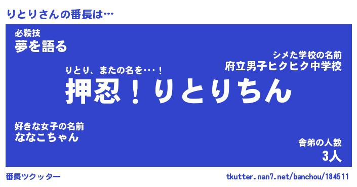 | 意味不明あだ名 | 『ペロリンりとり』『りとりフォーエバー』 |