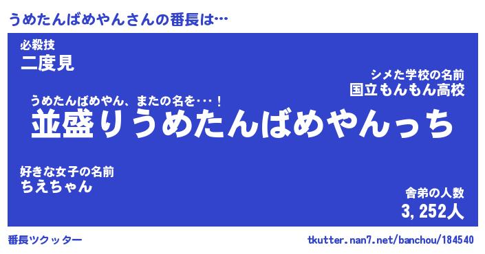 | 肩書あだ名 | 『うめたんばめやん御曹司』 |