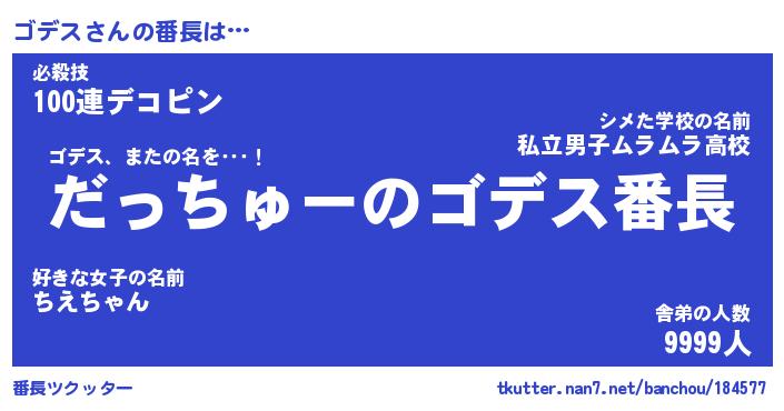 | ポケモン風あだ名 | 『ゴデチュウ』『ゴデスダネ』 |