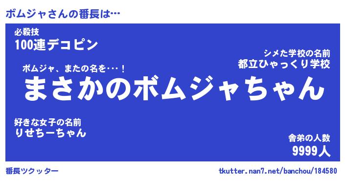 | ヒーロー風カッコイイあだ名 | 『スーパーボムジャ』『天弓騎士ボム』 |