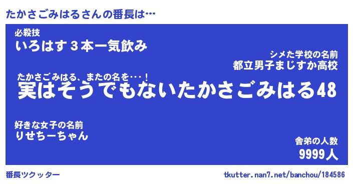 | 伝説のあだ名 | 『封印されしスナイパーたかさごみはる』 |