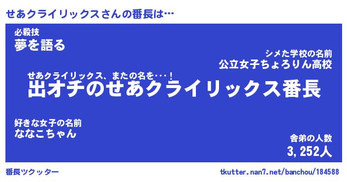| 意味不明あだ名 | 『ペロリンせあクライリックス』 |