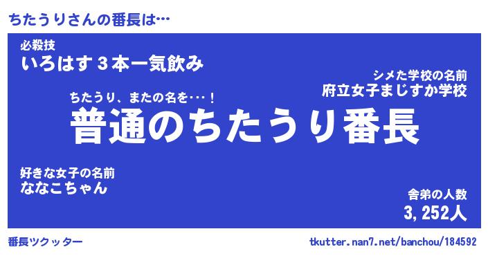 | 意味不明あだ名 | 『ペロリンちたうり』『永久保存ちたうり』 |