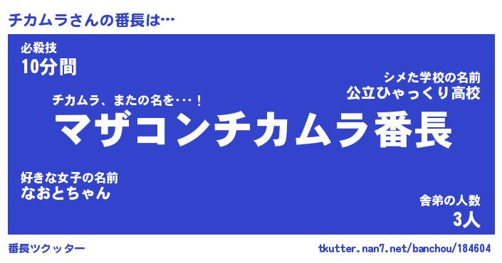 | ヒーロー風カッコイイあだ名 | 『スーパーチカムラ』『魔戒騎士チカ』 |