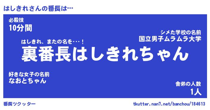 | 意味不明あだ名 | 『ペロリンはしきれ』『永久保存はしきれ』 |