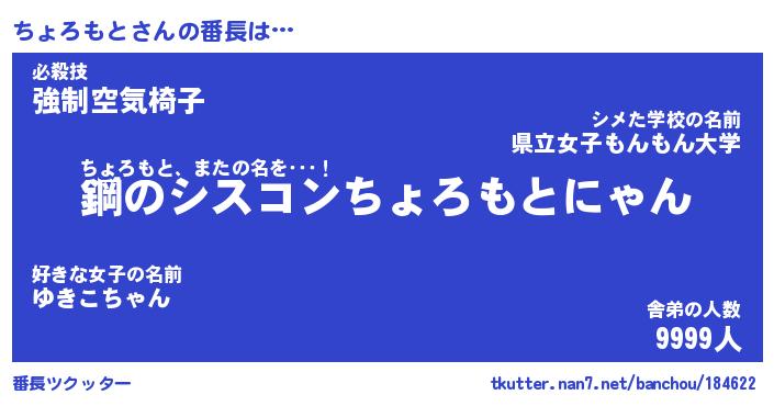 | 伝説のあだ名 | 『封印されしスナイパーちょろもと』 |
