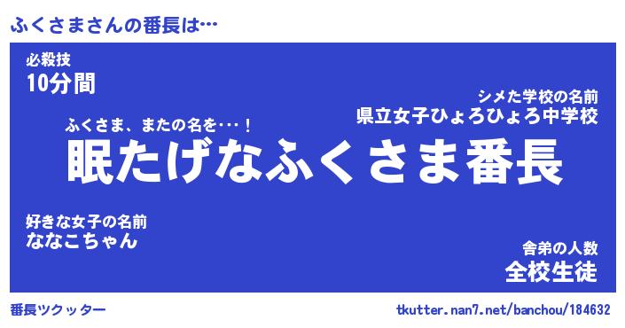 | ヒーロー風カッコイイあだ名 | 『スーパーフクサマ』『魔戒騎士フク』 |