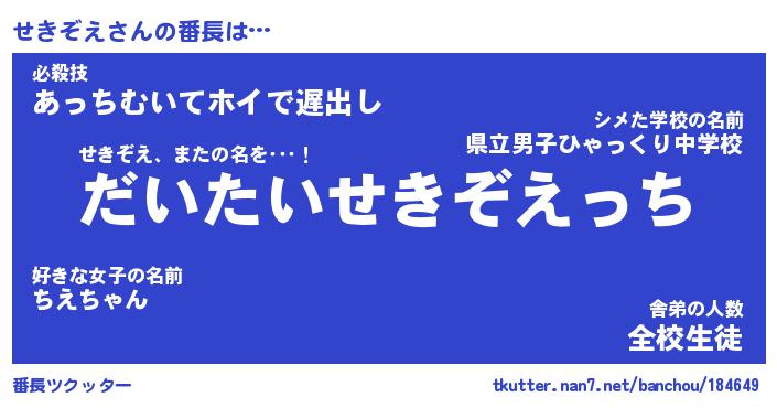 | 肩書あだ名 | 『せきぞえ店長』『せきぞえ大統領』 |