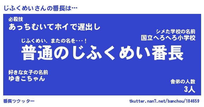 | ヘコむあだ名 | 『じふもー』『牛乳』『じふ太郎』 |