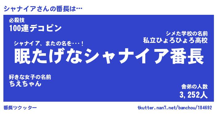 | ヒーロー風カッコイイあだ名 | 『スーパーシャナイア』『幻影騎士シャ』 |