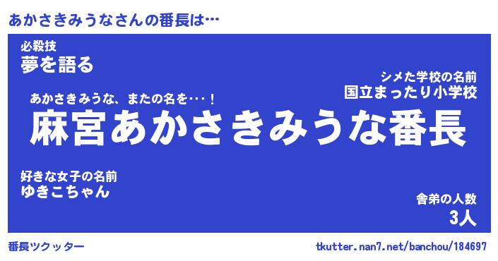 | ヒーロー風カッコイイあだ名 | 『スーパーアカサキミウナ』 |