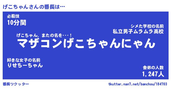 | 伝説のあだ名 | 『封印されしスナイパーげこちゃん』 |