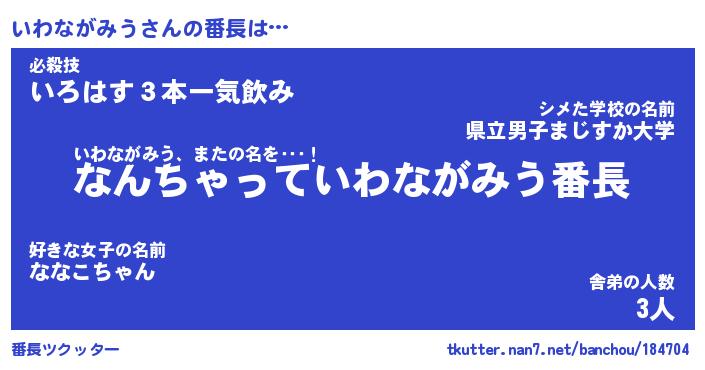 | 恥ずかしいあだ名 | 『プリティーいわながみう』『いわっちょ』 |