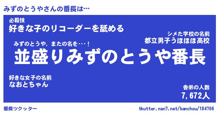 | ヒーロー風カッコイイあだ名 | 『スーパーミズノトウヤ』『炎刃騎士ミズ』 |