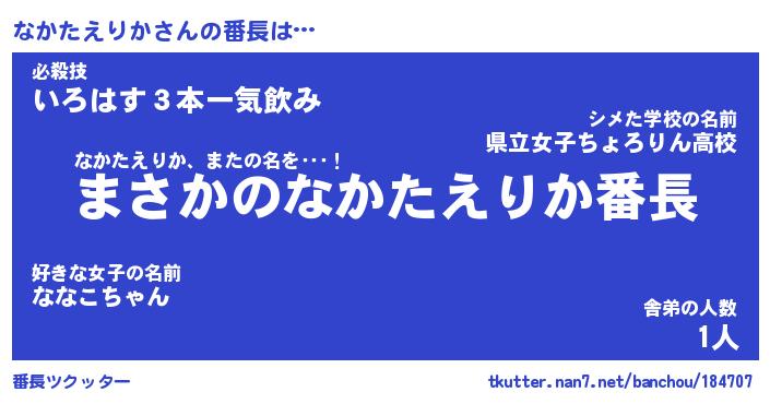 | 伝説のあだ名 | 『伝説のスナイパーなかたえりか』 |