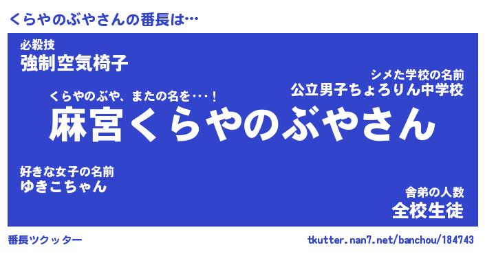 | 肩書あだ名 | 『くらやのぶや御曹司』 |