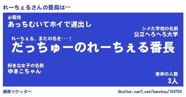 | 伝説のあだ名 | 『伝説の竜騎士れーちぇる』 |