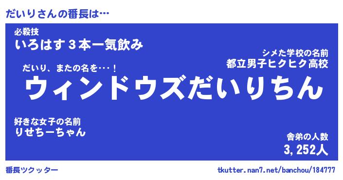 | 意味不明あだ名 | 『ペロリンだいり』『だいりフォーエバー』 |