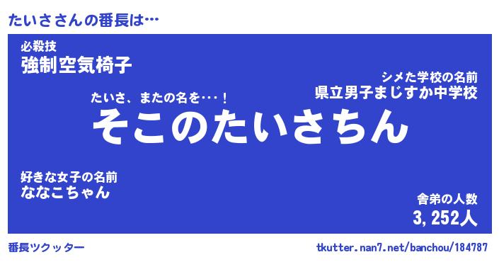 | ヒーロー風カッコイイあだ名 | 『スーパータイサ』『ウルトラたいさマン』 |