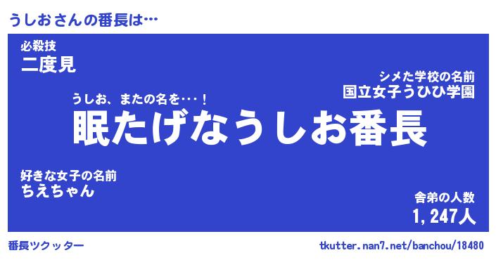 | ヒーロー風カッコイイあだ名 | 『スーパーウシオ』『ウルトラうしおマン』 |
