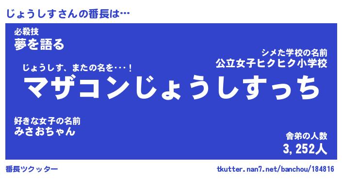 | ヒーロー風カッコイイあだ名 | 『スーパージョウシス』『幻影騎士ジョ』 |