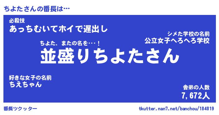 | 意味不明あだ名 | 『ペロリンちよた』『ちよたフォーエバー』 |
