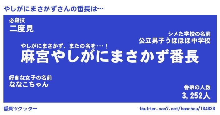| 肩書あだ名 | 『やしがにまさかず店長』 |