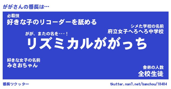| 2回繰り返すあだ名 | 『がががが』『がががが』『ぬめぬめ』 |