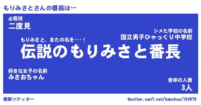 | ヒーロー風カッコイイあだ名 | 『スーパーモリミサト』『炎刃騎士モリ』 |