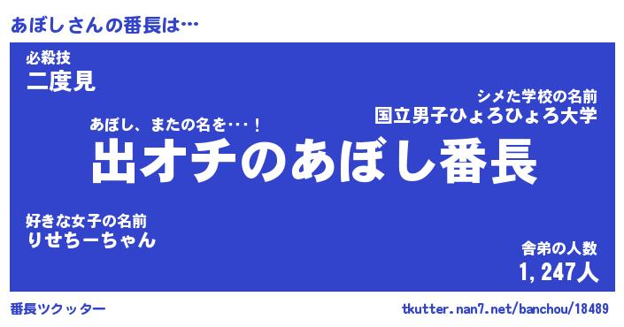 | ヒーロー風カッコイイあだ名 | 『スーパーアボシ』『ウルトラあぼしマン』 |