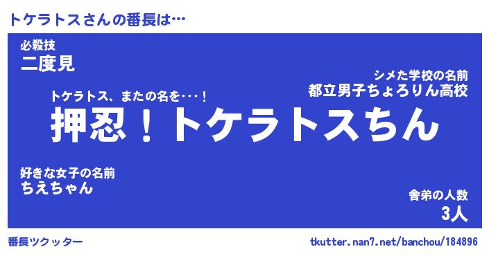 | 肩書あだ名 | 『トケラトス社長』『トケラトス総理大臣』 |