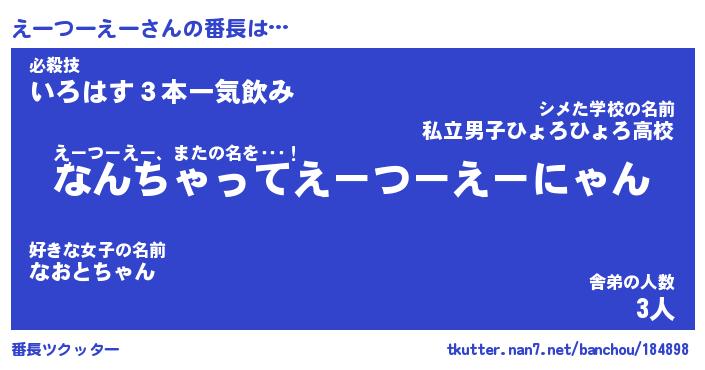 | 伝説のあだ名 | 『伝説のスナイパーえーつーえー』 |