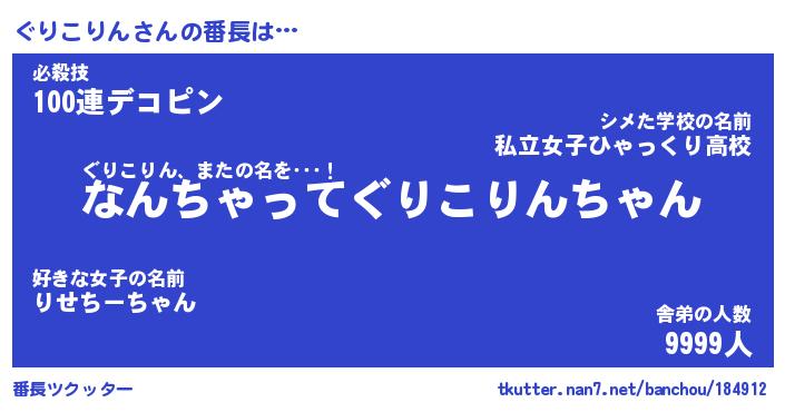 | ヘコむあだ名 | 『ぐりにー』『つくし』『ぐりっ子』 |