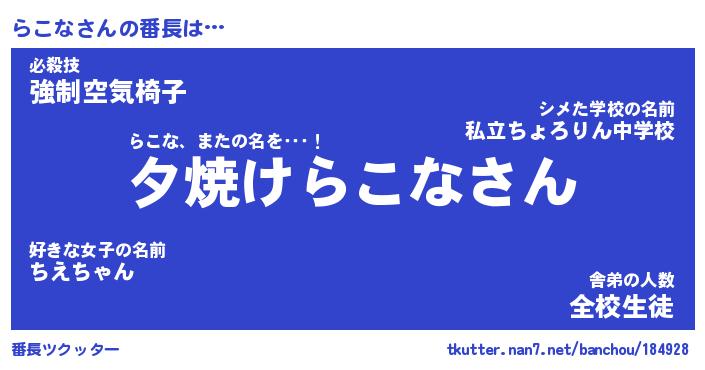 | ヒーロー風カッコイイあだ名 | 『スーパーラコナ』『ウルトラらこなマン』 |