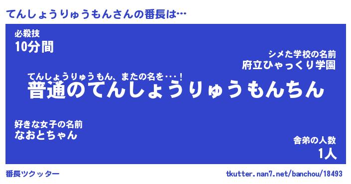 | 男性向けラノベタイトル風あだ名 | 『てんしょうりゅうもんの憂鬱』 |