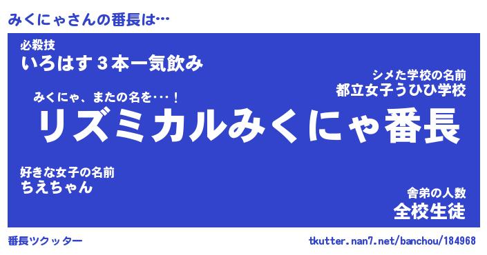 | 意味不明あだ名 | 『ペロリンみくにゃ』『永久保存みくにゃ』 |